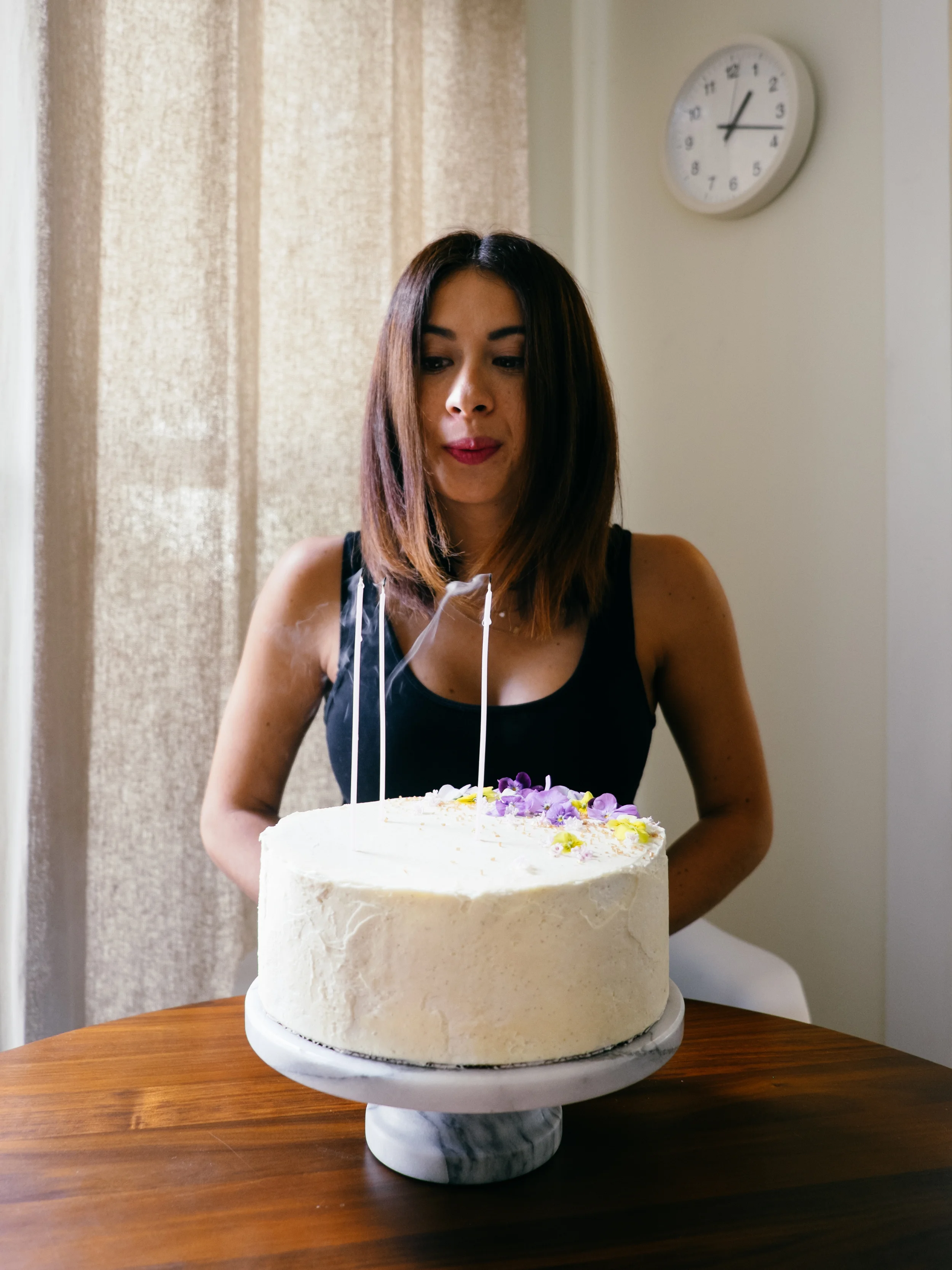 Gone are the days where the quality of my birthday celebration was measured by the amount of shots poured or number of guests in attendance. I'll tell you that if I wasn't sick, my ideal birthday celebration would have included an intimate dinner with my dearest friends and family, perhaps a round or two of celebrity (my favorite new game), and this cake. Yes. I made myself a cake. Because I turned thirty, I like making cakes, and why not! Each component compliments the others perfectly and also manages to represent different pieces of my life. Going back to the celebration for a quick moment, I do hope to get in a belated celebration (hint hint: Moses)!! And actually, thank goodness for birthday months because, I already got in a birthday dinner with family and another with my lovely friends when I went home earlier this month.