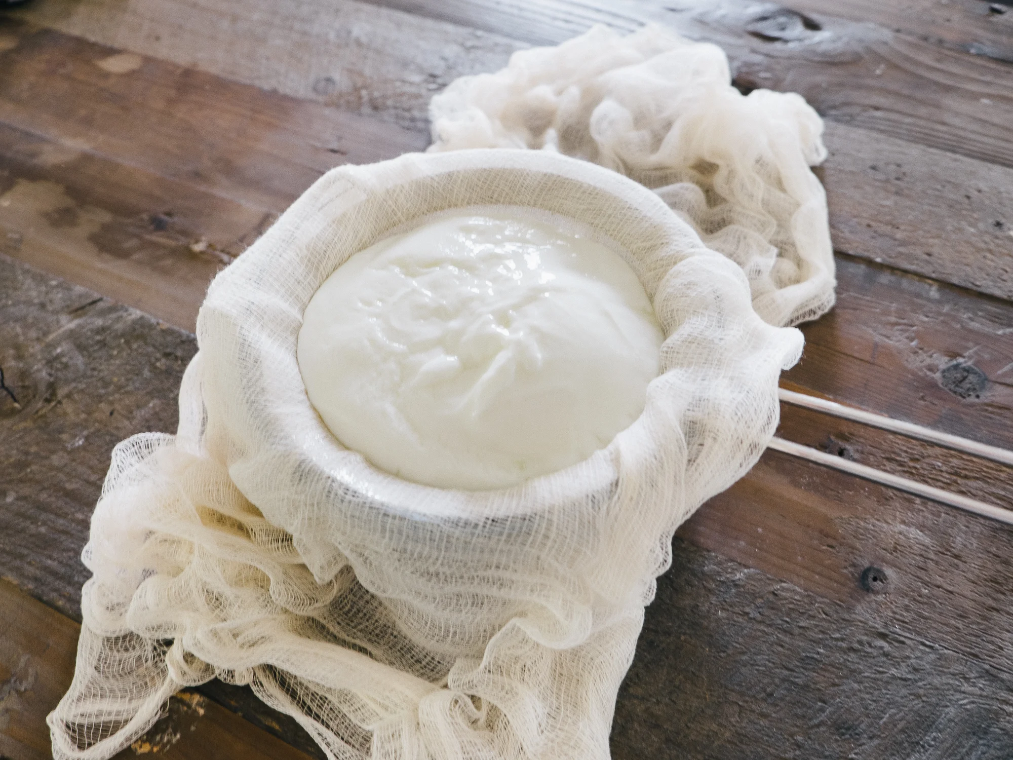 Line your fine mesh sieve with a few layers of cheese cloth. Spoon in the yogurt then gather ends together and twist shut at the top. Refrigerate for at least six hours.