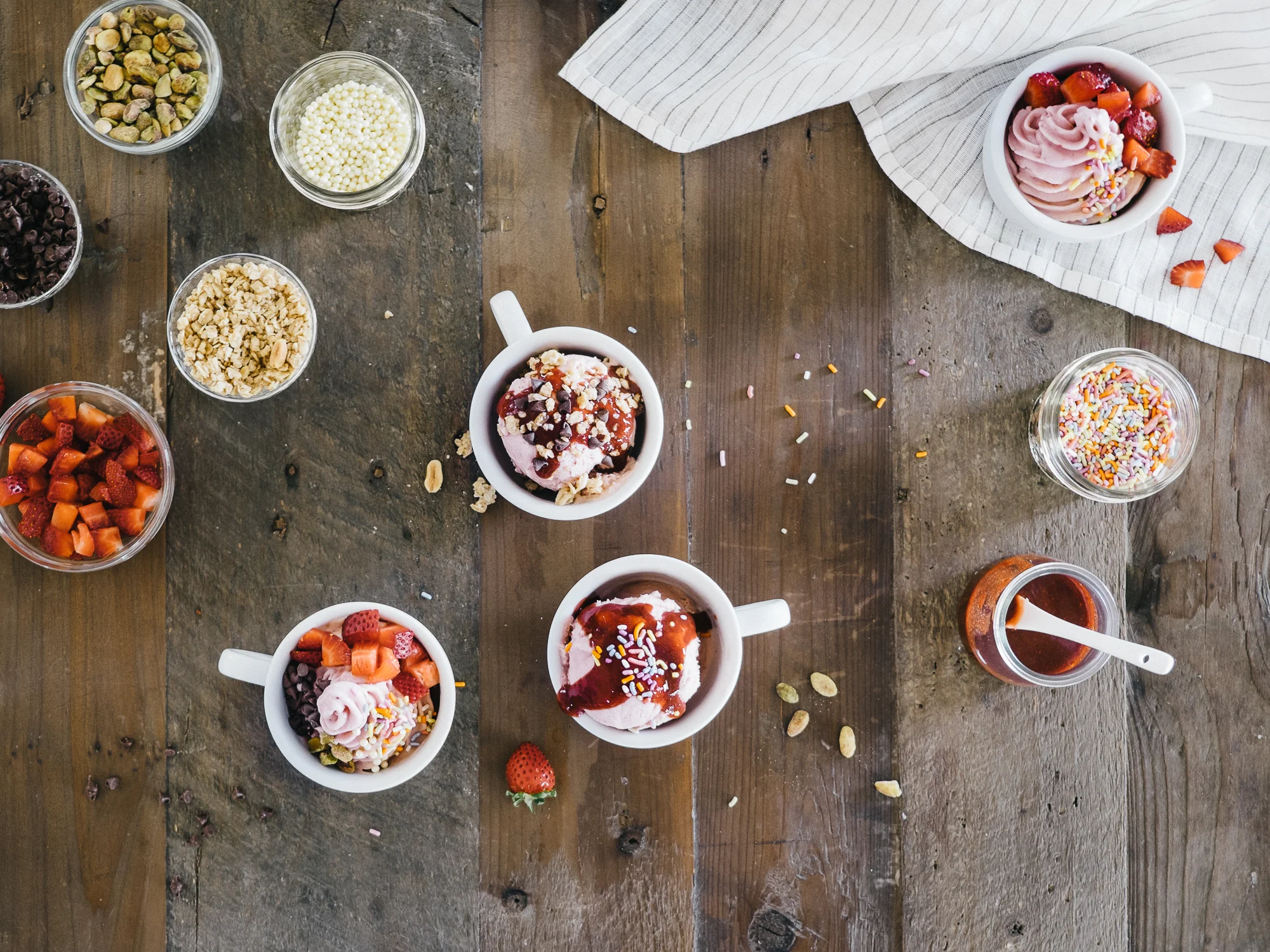 Transfer frozen yogurt to a storage container. Press a sheet of parchment onto the top of your frozen yogurt, wrap with plastic wrap and transfer to freezer until set (at least two to four hours).