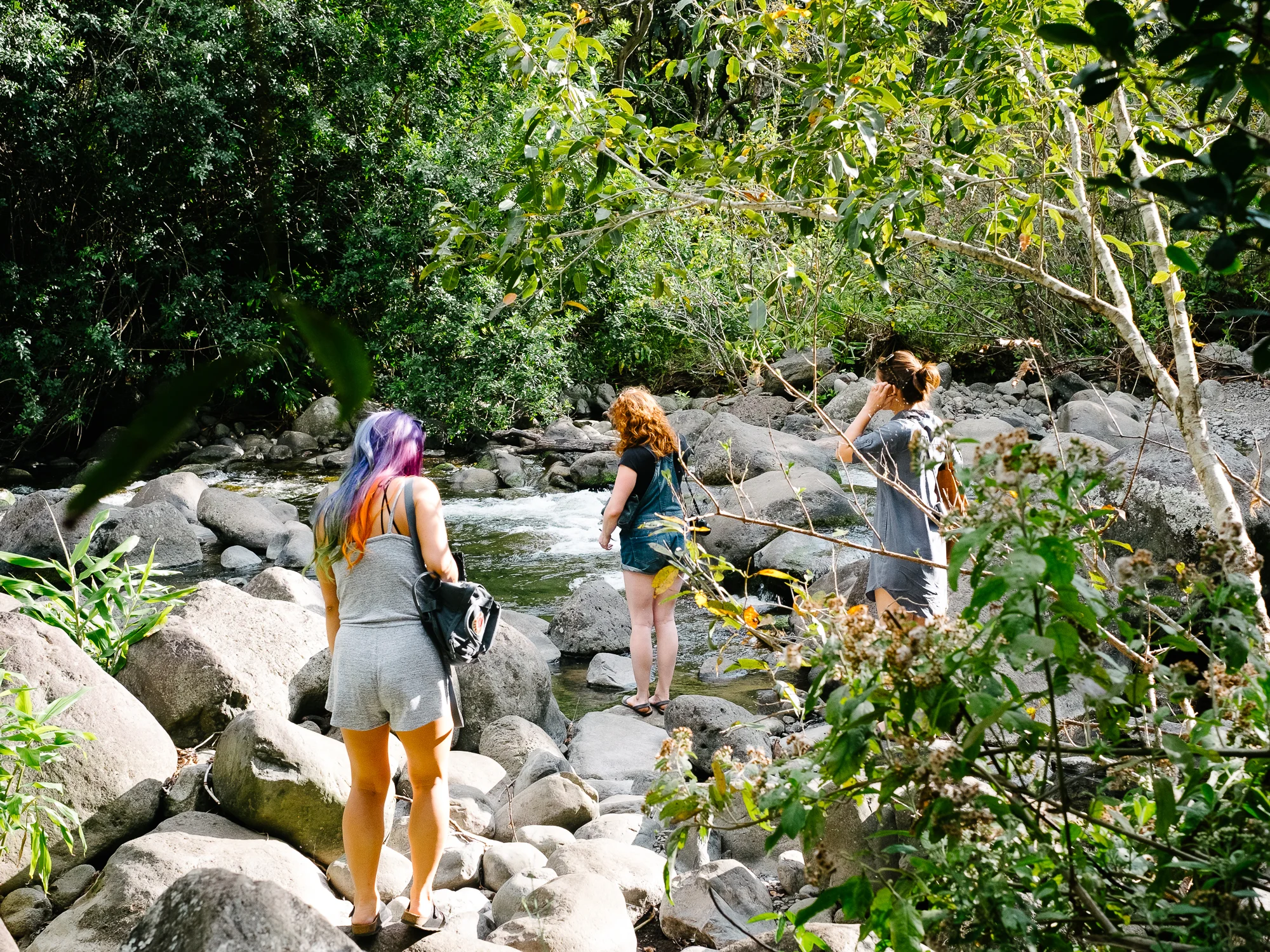Above: Steph, Lily, and Molly stepping on stones in Iao Valley.