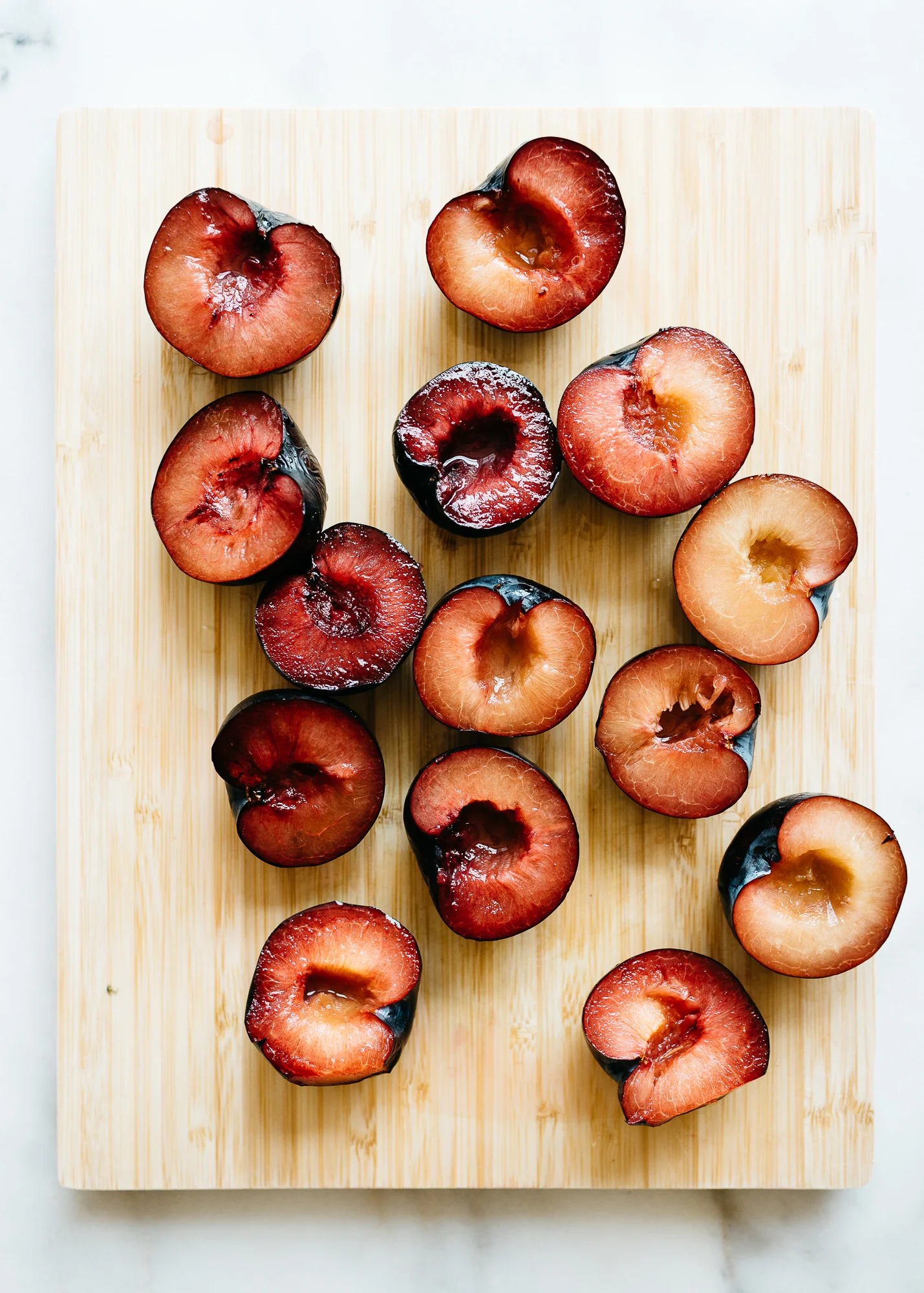 1 1/2 lbs. sweet plums or pluots (about 8), quartered and pitted