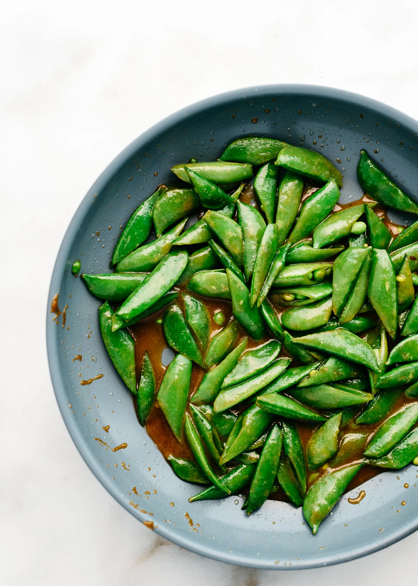 Clean the frypan then heat 1 teaspoon of olive oil on medium heat until it shimmers. Add the sugar snap peas and sauté for 2 minutes, then add the misoyaki sauce and toss to coat.